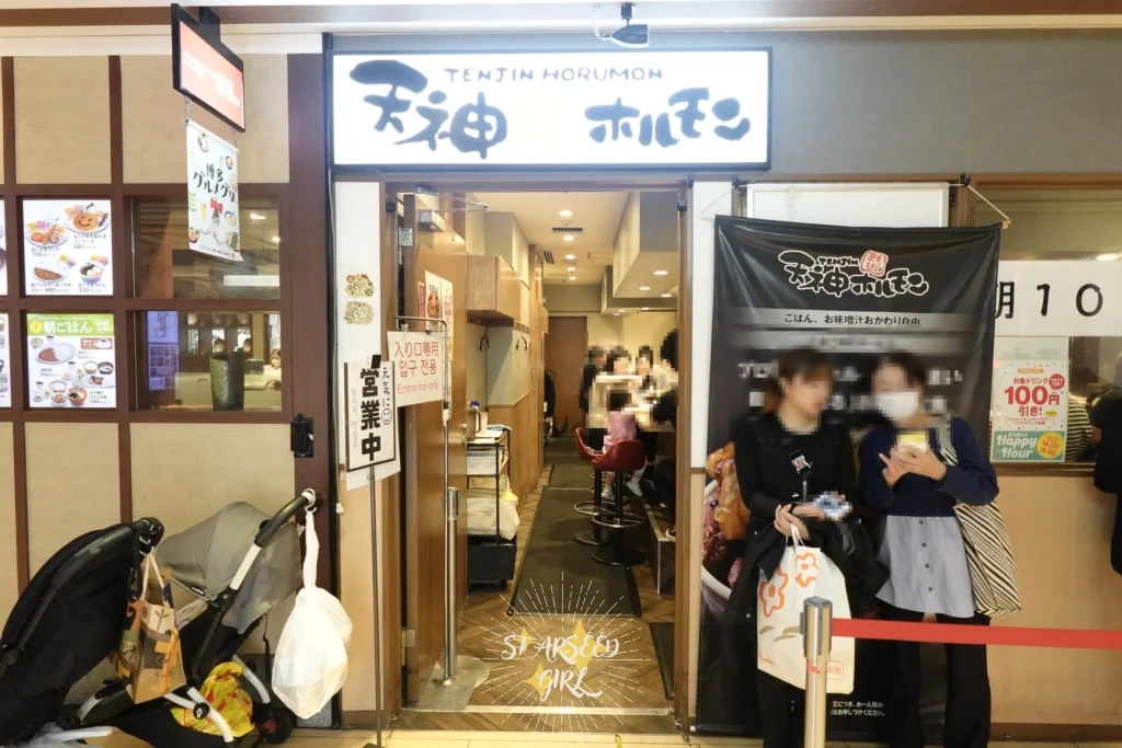 《天神.鐵板牛雜》鉄板焼天神ホルモン位於博多站前的博多一番街,店內位子不多,但兩次去都不太需要排隊,大約等兩組人左右,非常適合受夠排隊美食又想快速吃點好吃的重口味料理的人! 在排隊等候的時候,店員會先給菜單,然後幫忙點餐,有位子時再帶位入座~